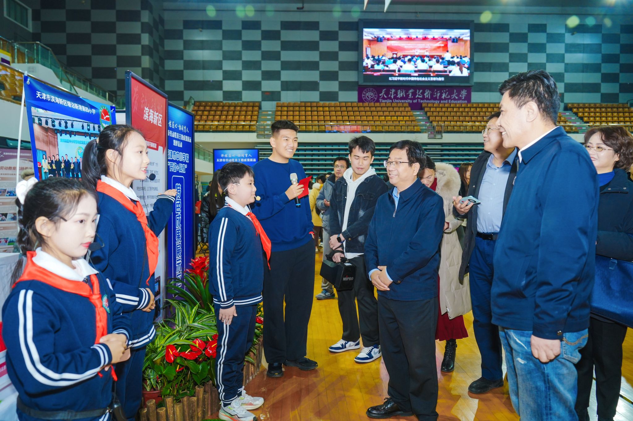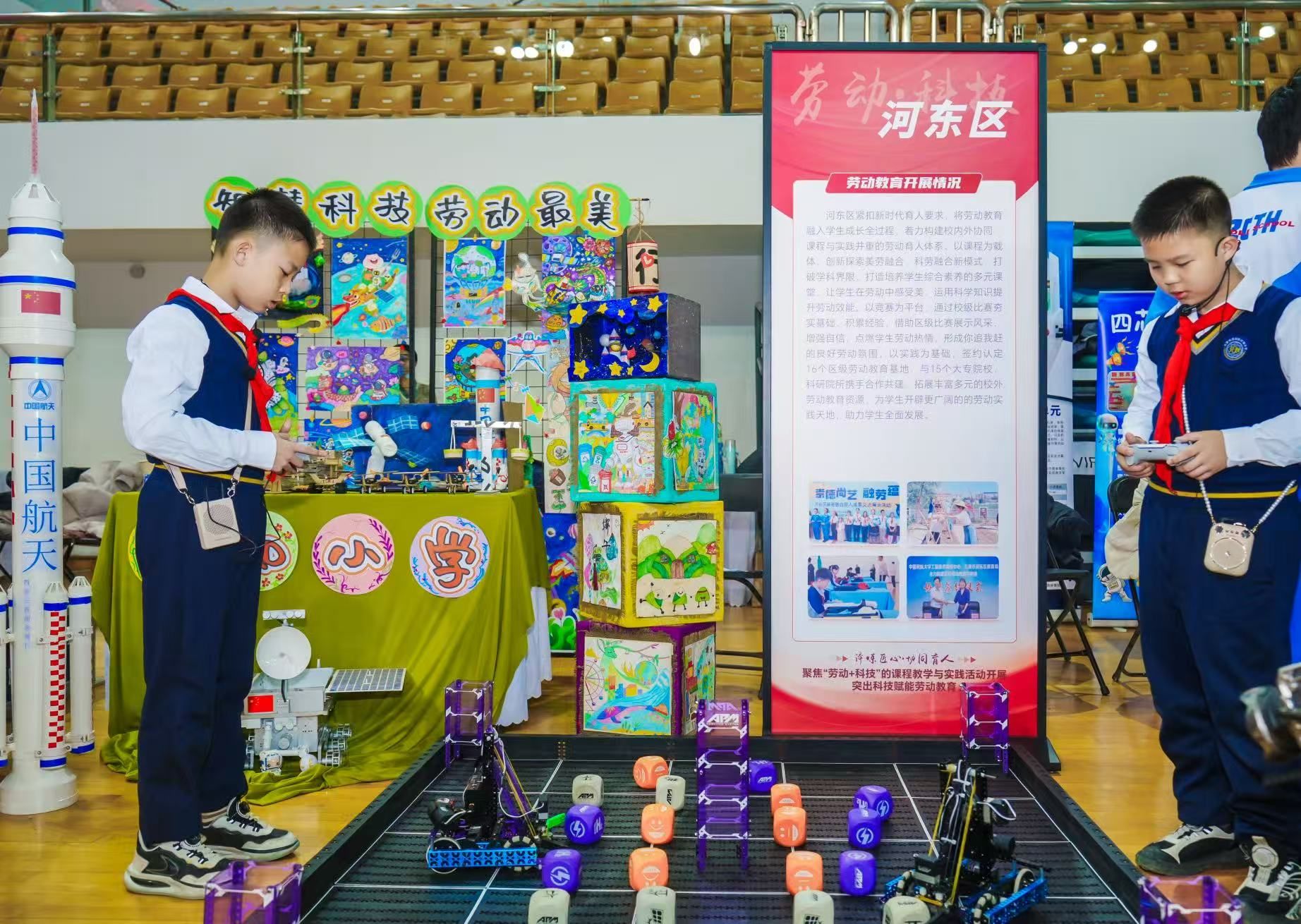 同期,天津市劳动教育主题成果展示观摩活动也在该校东区体育馆举办。活动现场有近百家单位参展,其中有60家天津市级中小学生劳动教育实践基地、36所天津各区、市直属中小学校,本次活动最大亮点在于对“劳动+科技”特色成果的深度聚焦,凸显科技赋能劳动教育的新时代内涵。通过本次活动搭建起市级劳动教育实践基地与中小学校互动沟通的桥梁,共同构筑起“基地+学校”“传统+科技”“实践+创新”的多元化实践场域,让劳动教育从课堂延伸至生活,实现了全方位覆盖。